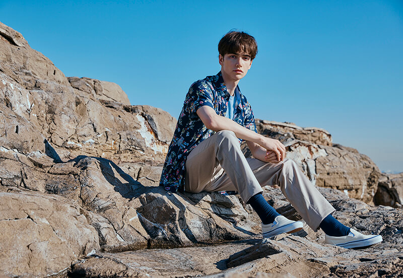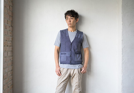 日本の長い夏に対応する真夏のレイヤードスタイルを提案。全開シャツ、ベスト、サマーニットにTシャツを合わせたコーディネートで盛夏を乗り切ります。